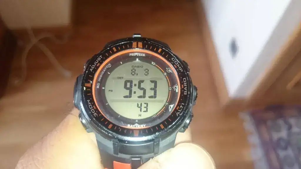 Hola a todos. Pongo en venta mi casio de montaña. El motivo es que voy a coger otro superior también de montaña, así que por favor no quiero cambios. El reloj está usado pero en muy buen estado. Quizás algo rozado en la parte superior de la esfera (se ve en las fotos). Al ser de aluminio se raya con facilidad. Por lo demás funciona perfectamente. La correa está perfecta y no tiene golpes en ningún lado.