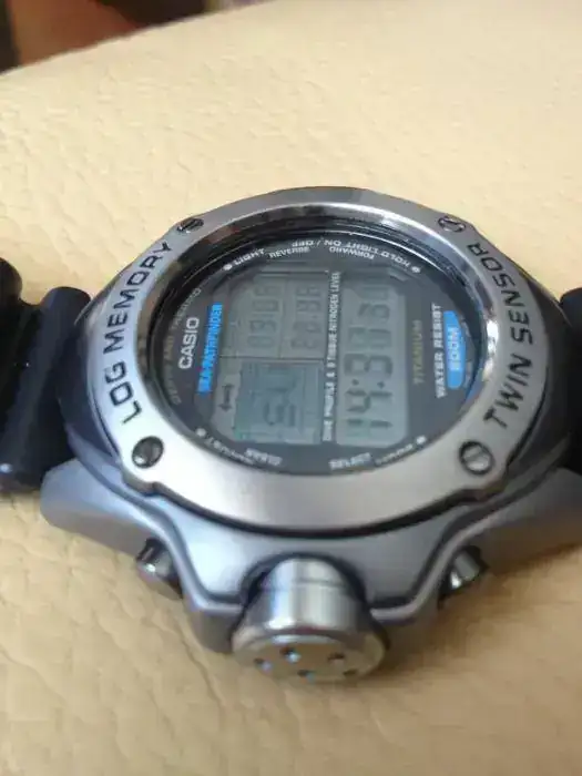 Hola de nuevo, continuando con la reestructuracion, saco a la venta este Casio Diver de Titanio, muy poco visto por aqui y de unos acabados excelentes. El reloj se encuentra en muy buen estado. Minimas marcas de uso, puesto en contadas ocasiones, no ha visto el agua ni de lejos, nunca ha sido abierto. El precio que le pongo es de 225 euros,envio incluido por correo certificado para un reloj que nuevo supera los 400 euros.