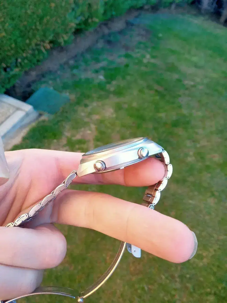 Está en muy buen estado, alguna marca en el brazalete original (muy difícil encontrarlo con él, eso sí válido para máximo entre 17 y 18 cm de muñeca), la caja está en un estado excelente y el cristal impoluto (cosa también complicadísima).