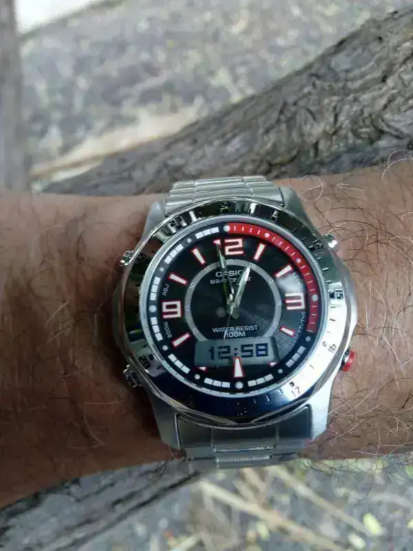Aqui estamos con nuestras historias relojeras,y aprovechar para presentaros mi ultima adquisicion.Se trata de un Casio WVA-220DE-1A,que tiene su pequeña aventura:Hace dias,aparecio en el FCV,un Orient anadigi.que llamo mi atencion,alli se quedo,y al cabo de muchos dias,me acorde de el,lo busque,lo encontre y me puse en contacto con el vendedor,con el fin de llegar a un acuerdo sobre la pieza.La respuesta del vendedor fue:"que se habia olvidado especificar en el anuncio,que envios solo hacia a peninsula",despues de ponerme en contacto con el,e intentar explicarle por activa y pasiva,que el envio no iba a ser caro,ni farragoso,nunca llegamos a un acuerdo,y la cosa se quedo asi.