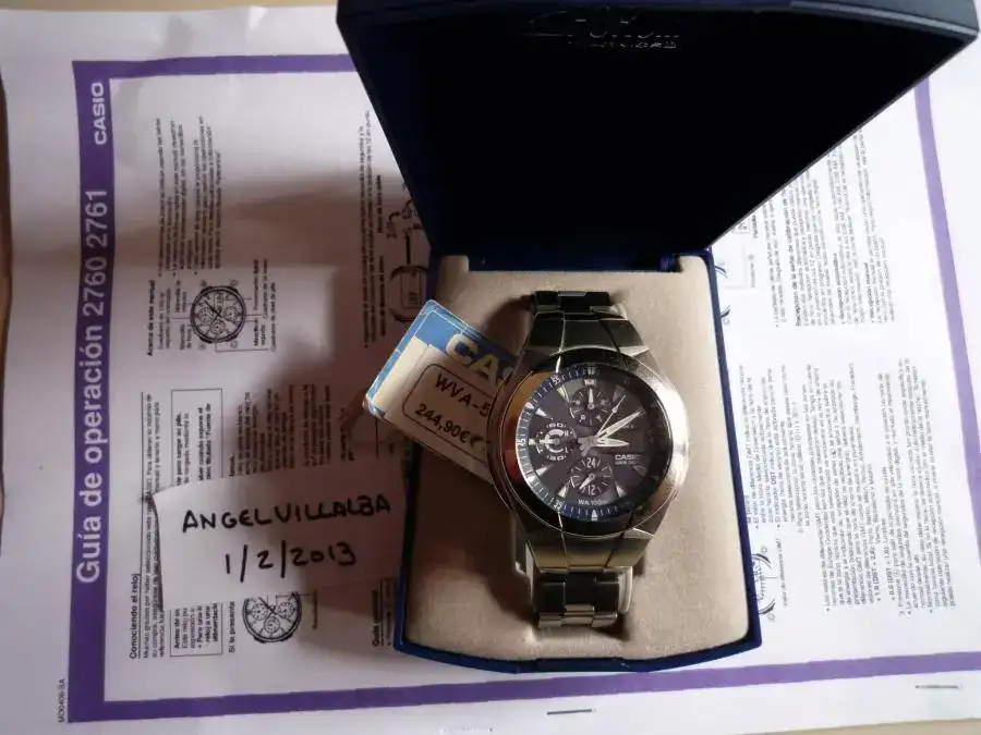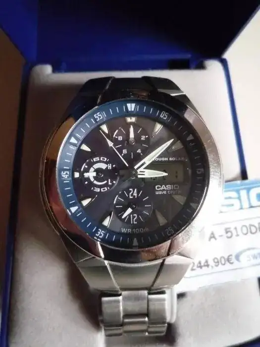 Por no haber usado nunca, (solamente expuesto en la mesa de mi oficina), pongo a la venta este maravilloso reloj Casio WVA-510DE con horas radiocontroladas, es cronografo y solar, va con armis de acero.