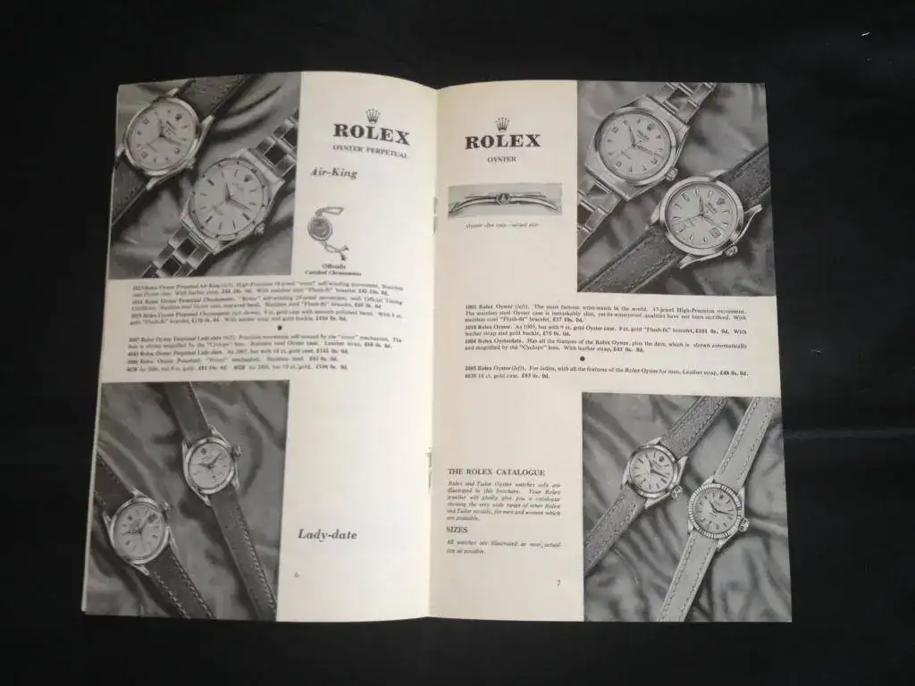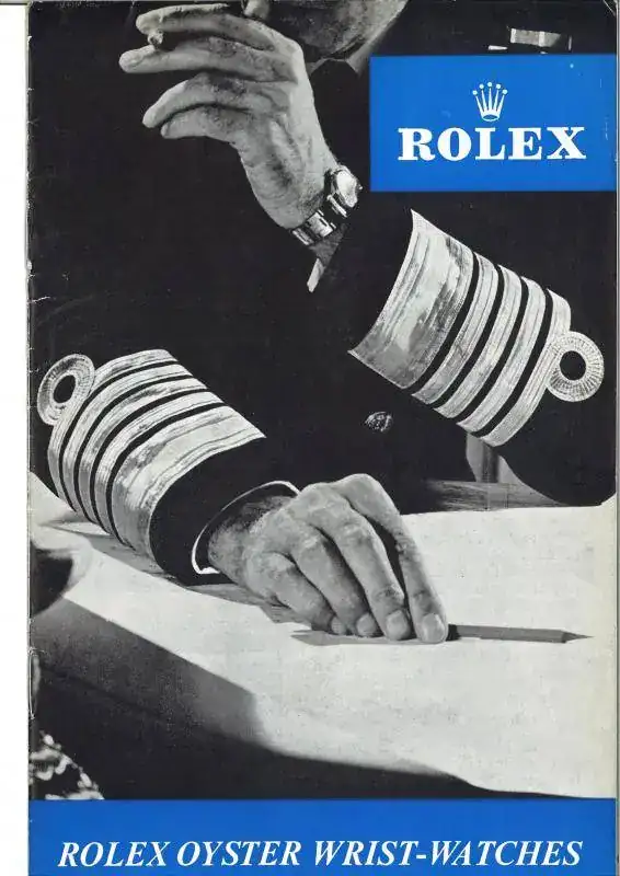 Se trata del catálogo de 1960, uno de los últimos años en los que Rolex utilizó el tema del Almirante en la portada. Los dibujos que aparecen vienen de años atrás, en otro catálogo de 1956 que tenía aparecían los mismos para los principales referencias.