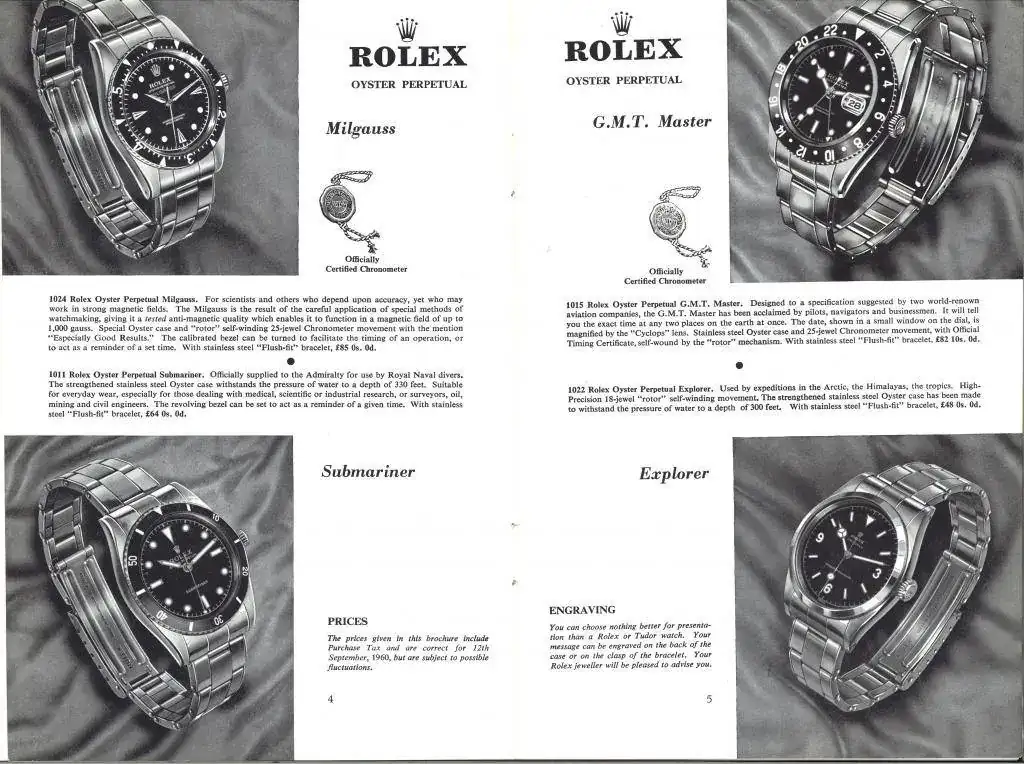 De todos el más caro era el Milgauss de 85 libras, seguido del GMT Master a 82 libras. El Sub costaba 64 y el XPlorer apenas 48 libras.