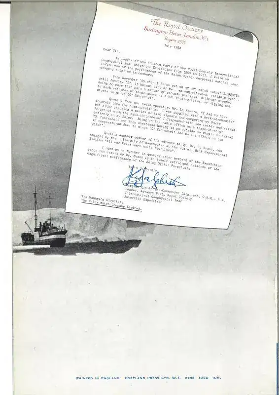 Con una historia de éxito de una expedición al círculo polar antártico, dotada de Rolex Oyster Perpetuals.