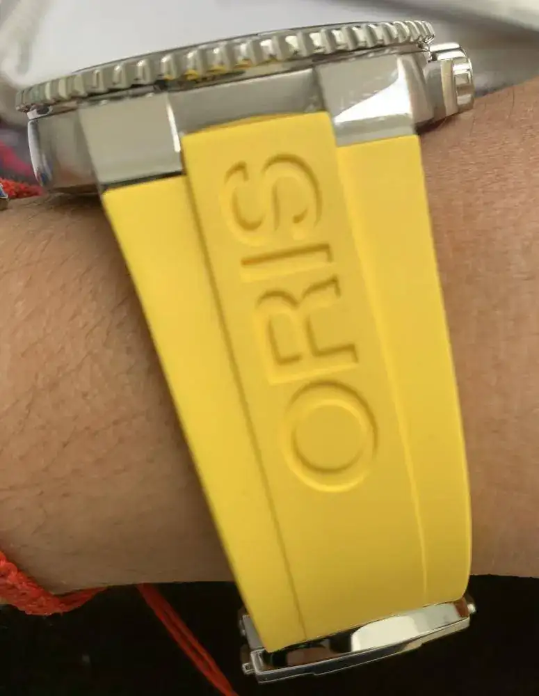 Pues en este encierro uno se aburre demasiado, y platicando en un grupo de Facebook un integrante comentó que tenia el caucho amarillo con solo una puesta, original y al 100%. pues me animé, apenas me lo entregó hoy y el Aquis ya tiene tres mudas, acero, caucho negro y ahora el caucho amarillo, creo que se ve espectacular, aquí unas fotos muy rápidas.