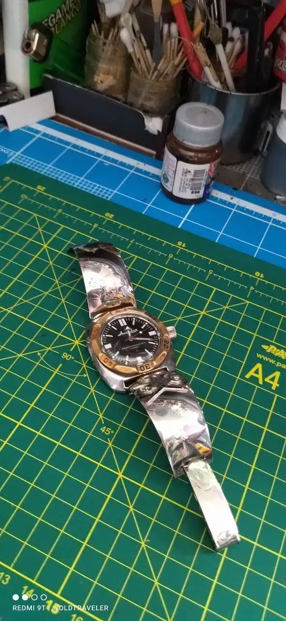 Y la de acero curvado, es una estilo "Olongapo bands", fueron populares entre los buceadores de la marina yanqui estacionados en la base de Subic Bay, en las Filipinas, durante la guerra de Vietnam, me la hizo un artesano filipino que contacte gracias aun estimado compañero del foro, que tambien ha publicado unos hilos interesantimos acerca de los relojes de buceo y tambien de las correas, muy recomendables todos ellos, (eso es otra cosa que he aprendido aqui ).