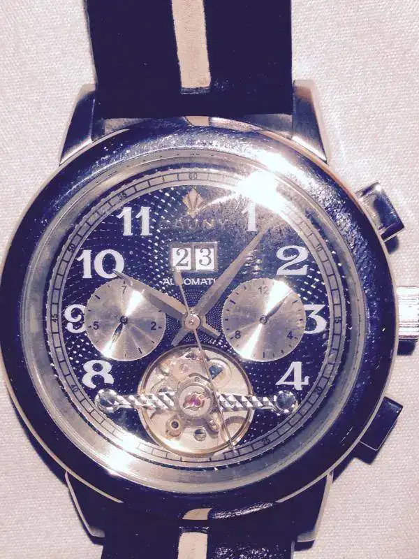 Pongo a la venta éste Cauny del cual desconozco el calibre que monta. Lo he intentado, sin éxito ya que no he logrado abrirlo. La marcha es buena, funciona corrido, sin saltos y la corona es roscada. Monta una maltrecha correa Piero Magli. Indicar que la caja es pulida a espejo en el bisel y seria recomendable pulirla, no hay ningun arañazo profundo, pero se ven los pelos. El envío certificado va incluido en el precio.