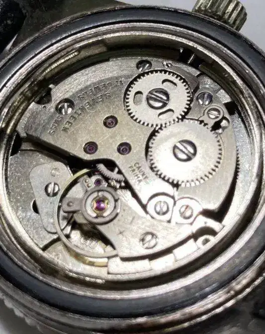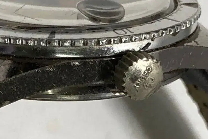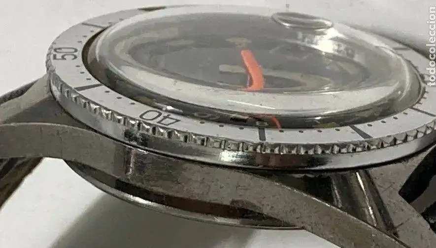 Caja cromada con algo de desgaste Fondo de acero inoxidable en buen estado, con algunos arañazos,pátina en águjas e índices originales en muy buen estado aún con lumen Bisel exterior giratorio bidireccional, cristal acrílico en buen estado Corona firmada original, mecánico de carga manual Cauny marchando con un segundo +/- día que para mí es perfecto.
