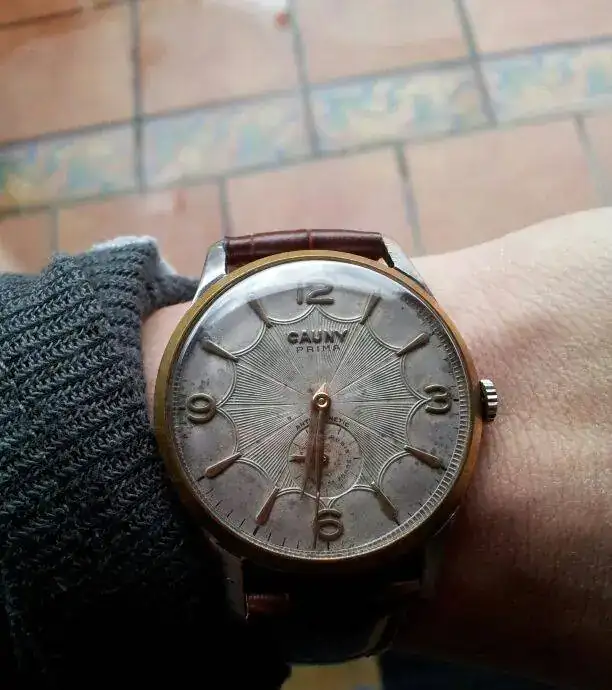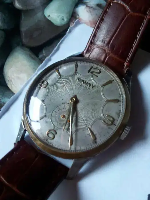 Ancho de asas 20mm, caja de 40 con corona, que como veis es un gran tamaño para la época. Funcionando perfectamente y con una esfera preciosa que no he querido tocar. Listo para usar, pues el plexi está en muy buen estado y lo entregaría con correa de piel marrón como la de la foto pero nueva a estrenar.