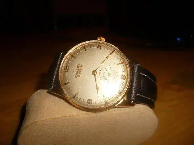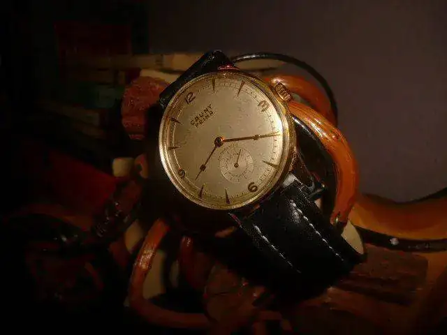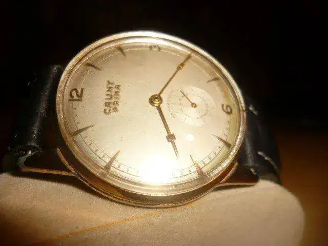 propongo para cambio este abuelete Cauny Prima, mide unos 38mm. sin corona, esfera gris, aunque tiene algo de pátina la esfera es de color grisaceo, lo único que está algo más castigado es el chapado como podéis observar en mis malas fotos, al ser más bien en la trasera y las asas el reloj es ponible a quien le guste este tipo de piezas, el calibre está en muy buen estado y su marcha es excelente (no controlo muy bien qué tipo de calibre es), correa de piel negra y hebilla dorada sin apenas uso. No tengo preferencias por el cambio, simplemente que me guste y preferiblemente mecánico/automático. Gracias por mirar y al foro por el espacio.