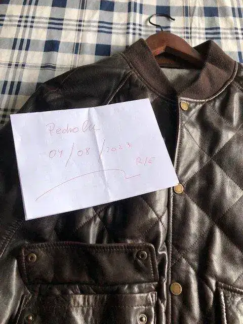 Vendo esta cazadora por error de talla ,es una L para personas sobre 1,74 a 182 aprox.Tiene una puesta,por lo que esta nueva sin etiquetas.Es de piel autentica color marron y con forro ,bolsos exteriores y entrada lateral mas uno interior.En otra marca valdria mas de 400 euros.Por su echura perfecta para calle,moto,etc...