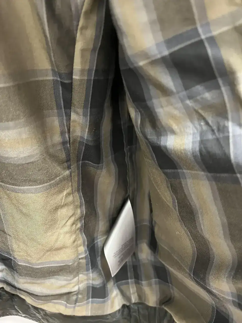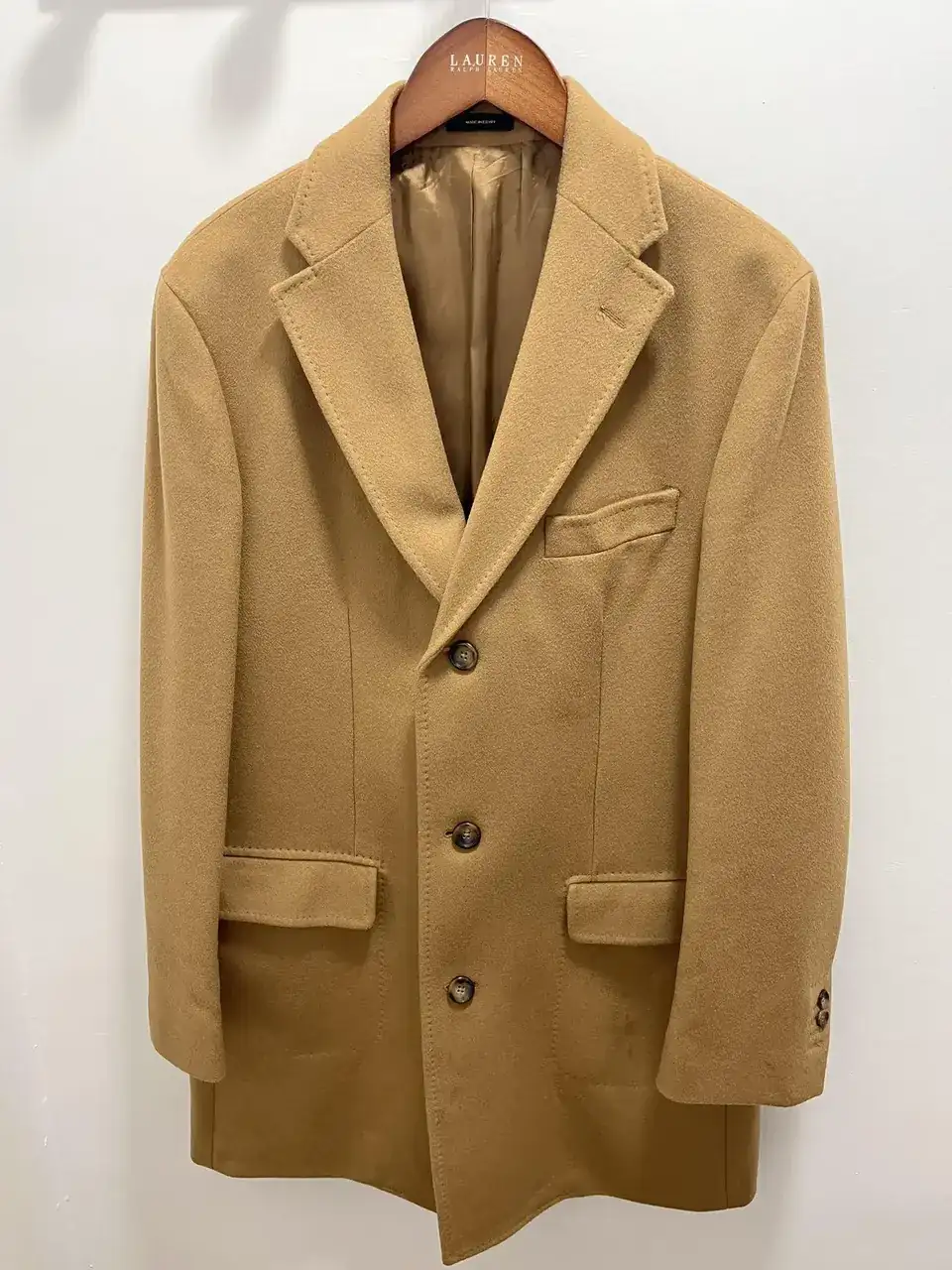 Uso testimonial. 97%lana 3%Cashemira. Talla 52 (equivale a una L normal). 94 cm de largo. Al ser claro tiene algunas manchitas que se quitan en la tintorería.