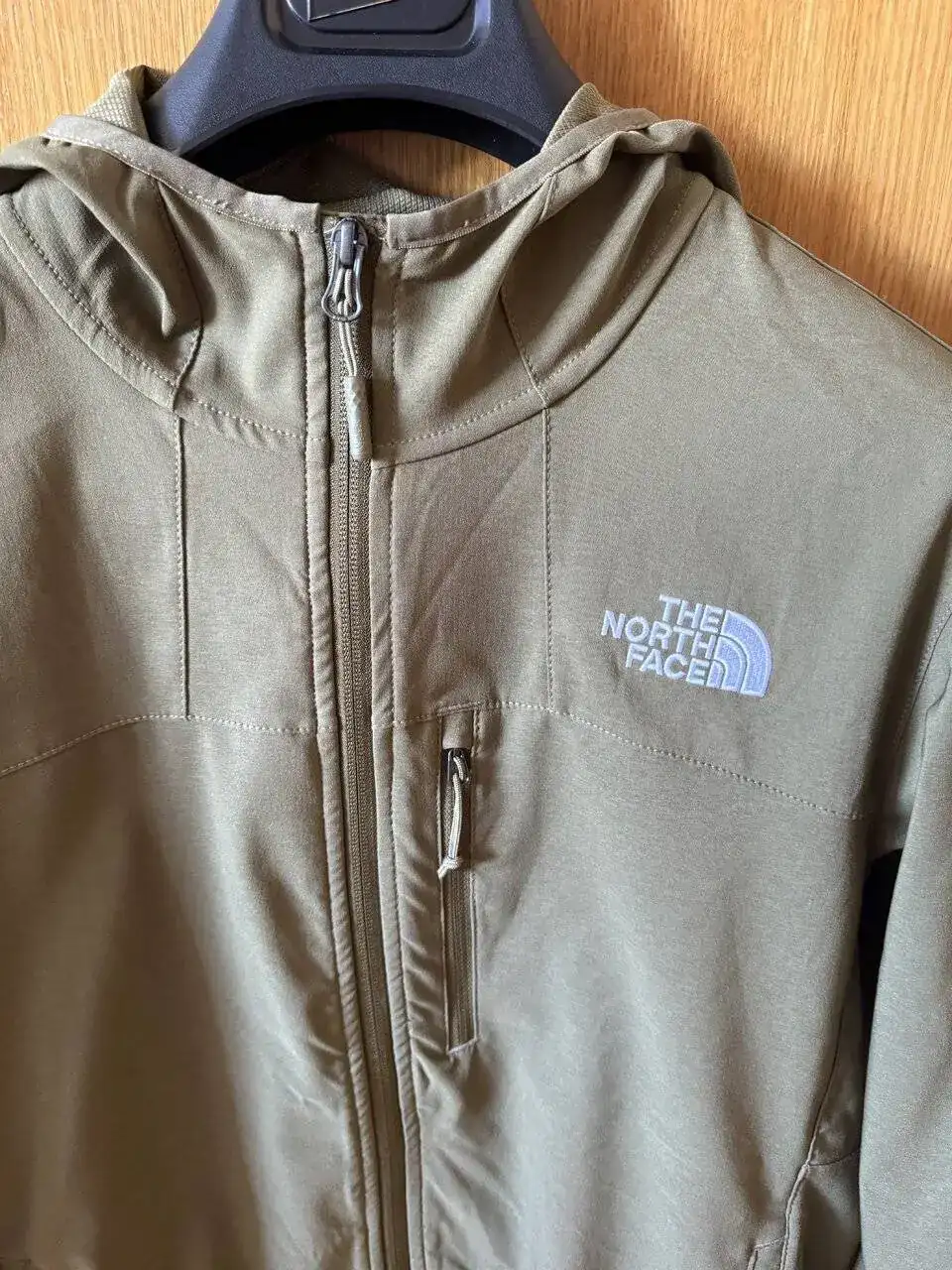 La de The North Face es de un tejido softshell fino, elástico y muy ponible que te aísla de viento y lluvia ligera a la vez que transpira, super comoda y n color verde.