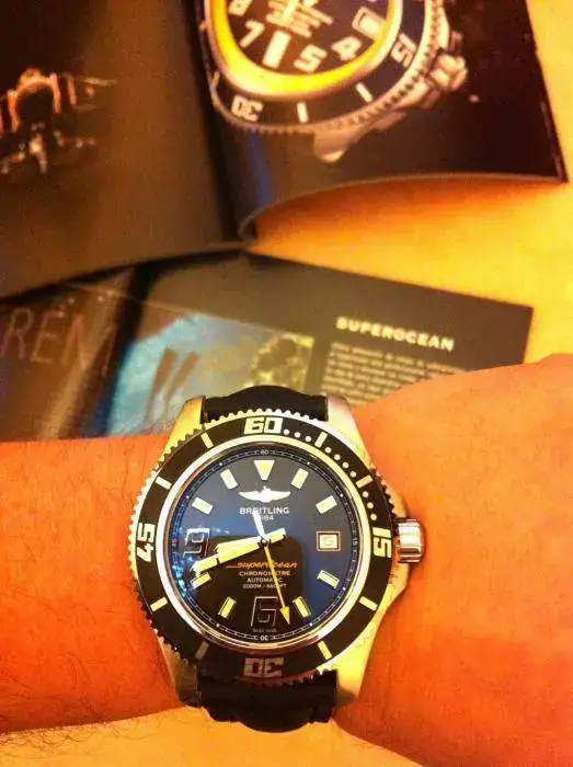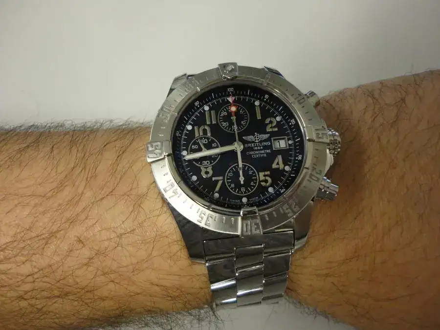 Mi primer y unico Breitling de momento, un azulón de 46 mm. Me encanta. Saludos.