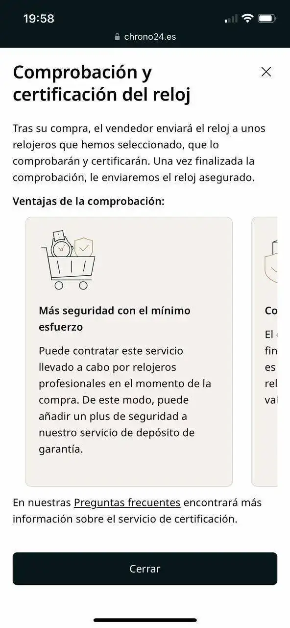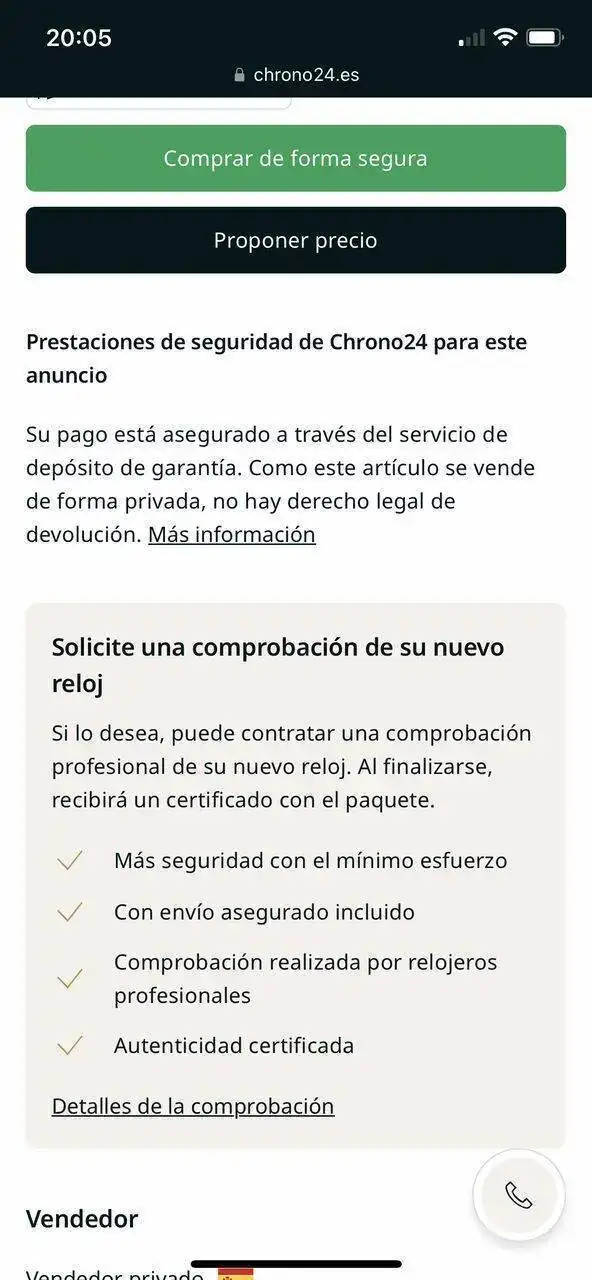 Resulta que chrono24 tiene un servicio que se puede contratar donde te certifican el reloj en el proceso de compra. Es algo bastante interesante puesto que te ahorra en caso de tener dudas de cuando recibes el reloj tener que ir corriendo al CO a comprobarlo en el tiempo que establecen antes de liberar el pago.