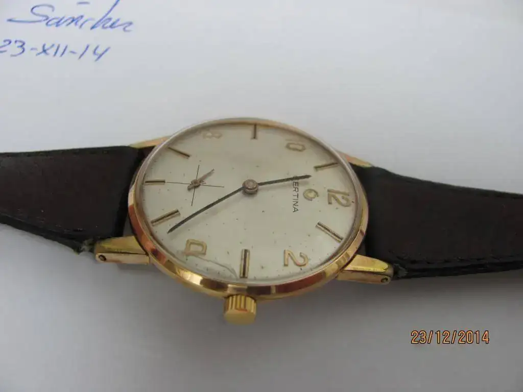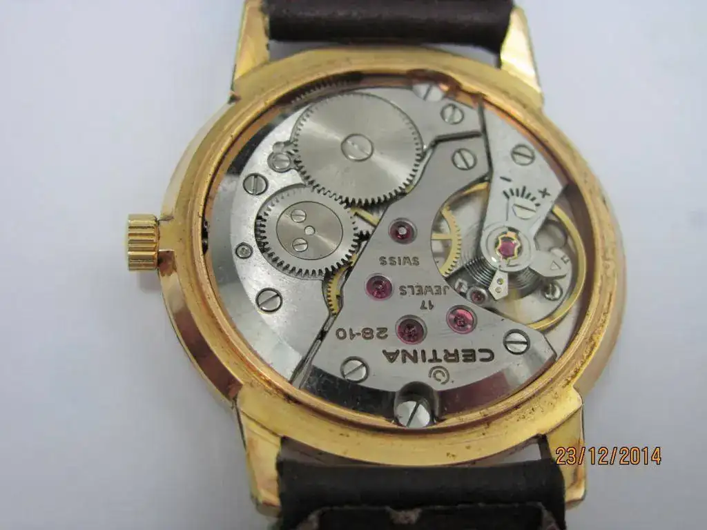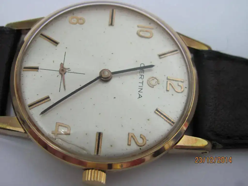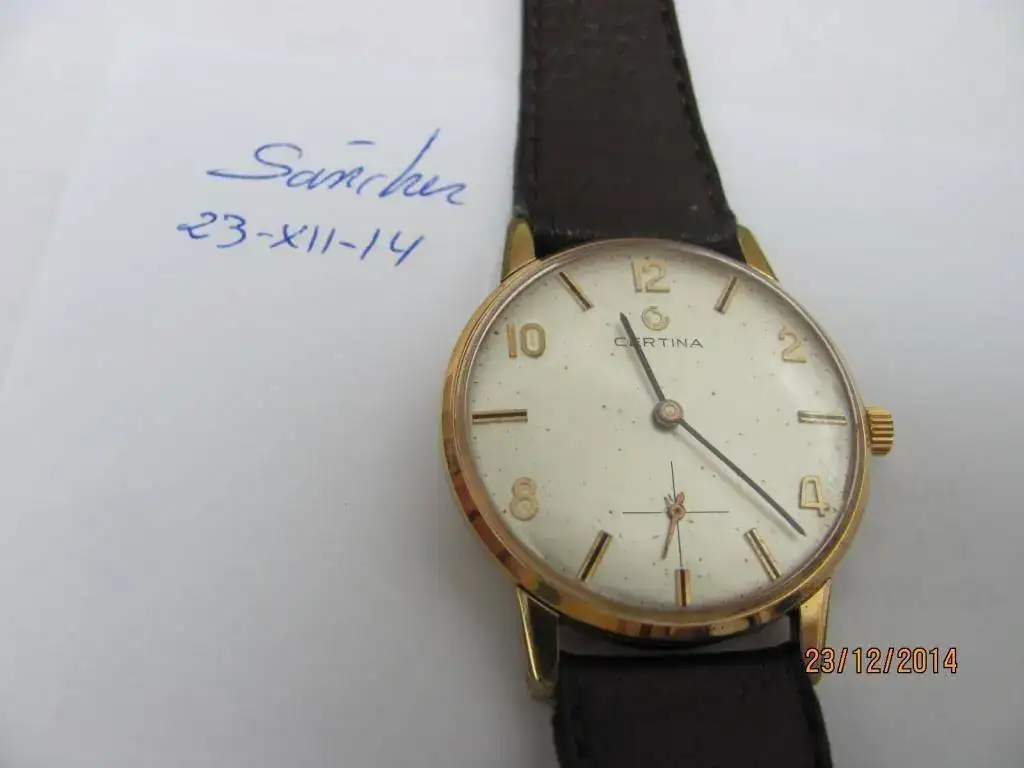 Vendo un clásico de Certina. Un 28-10 chapado con levísimo desgaste en las garras. El plexi tiene una fisura a las 4. La corona no es original y la esfera presenta unas pocas picaduras. Funciona perfectamente. La correa es genérica.