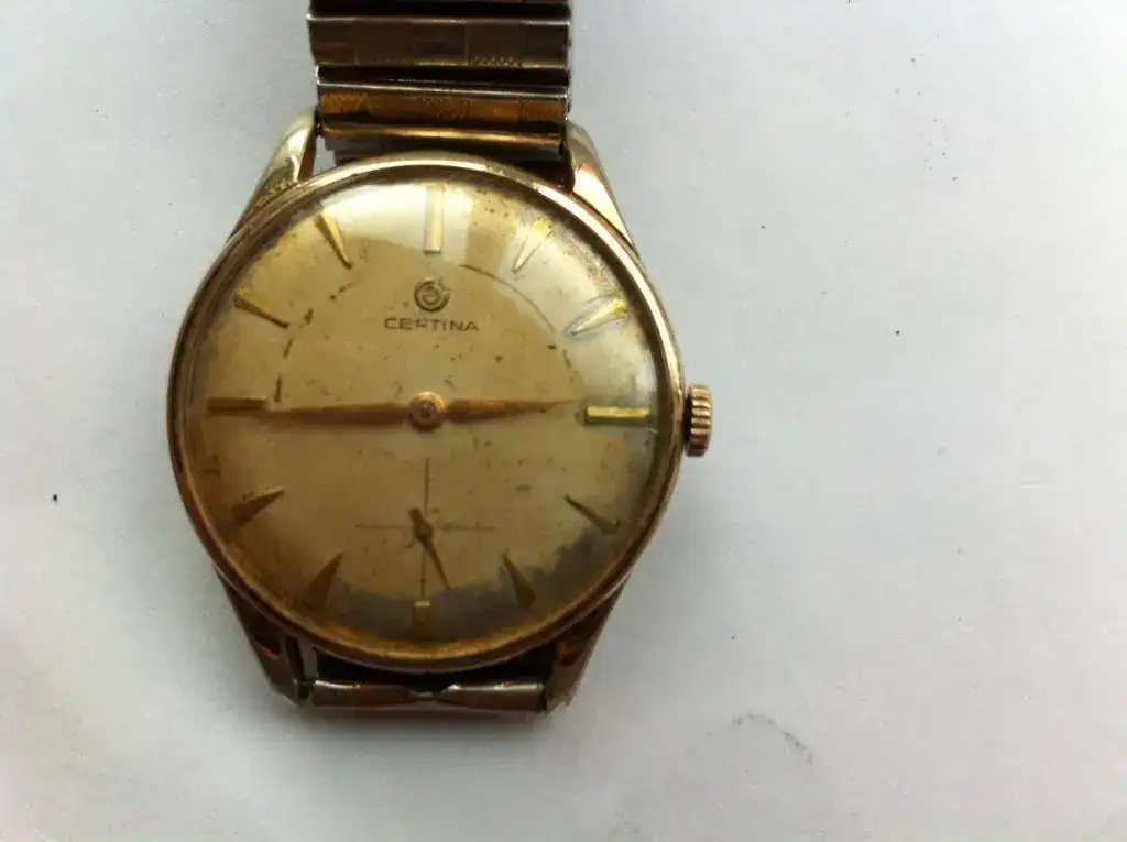 Vendo este Certina vintage de cuerda manual, con calibre manufactura KF321 con incabloc.. El funcionamiento es bueno, más que correcto para sus años. El reloj presenta exteriormente signos de uso con desgaste del plaqué. Mide 35/36mm sin corona que seguramente no es la original de fábrica. El dial presenta un notable desgaste o decoloración en la parte inferior. El plexy ha sido remplazado .Lo acompaño con un armis extensible contemporáneo de su época.