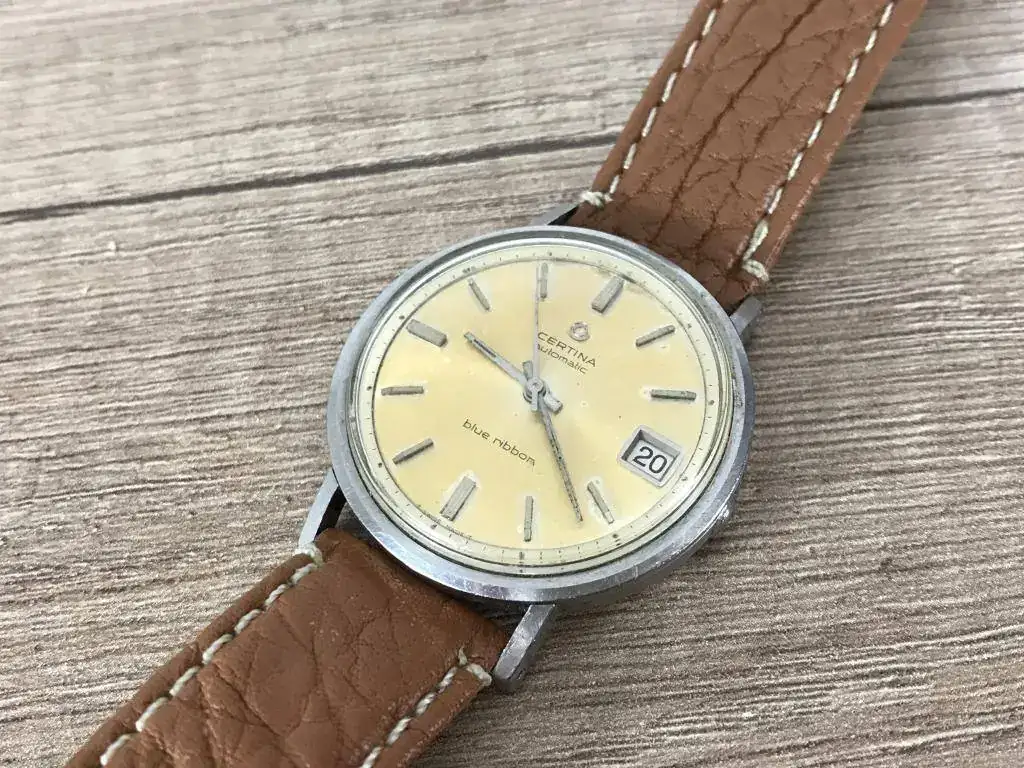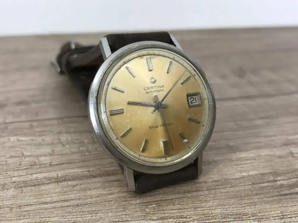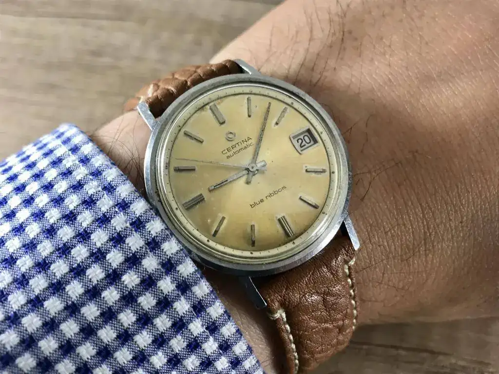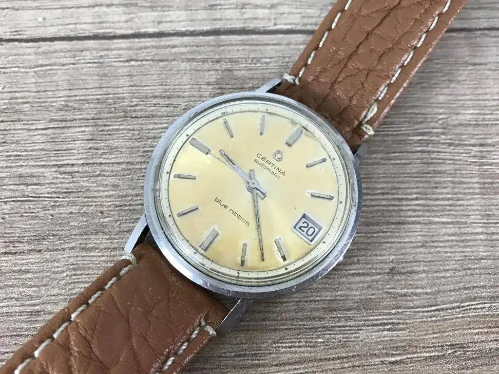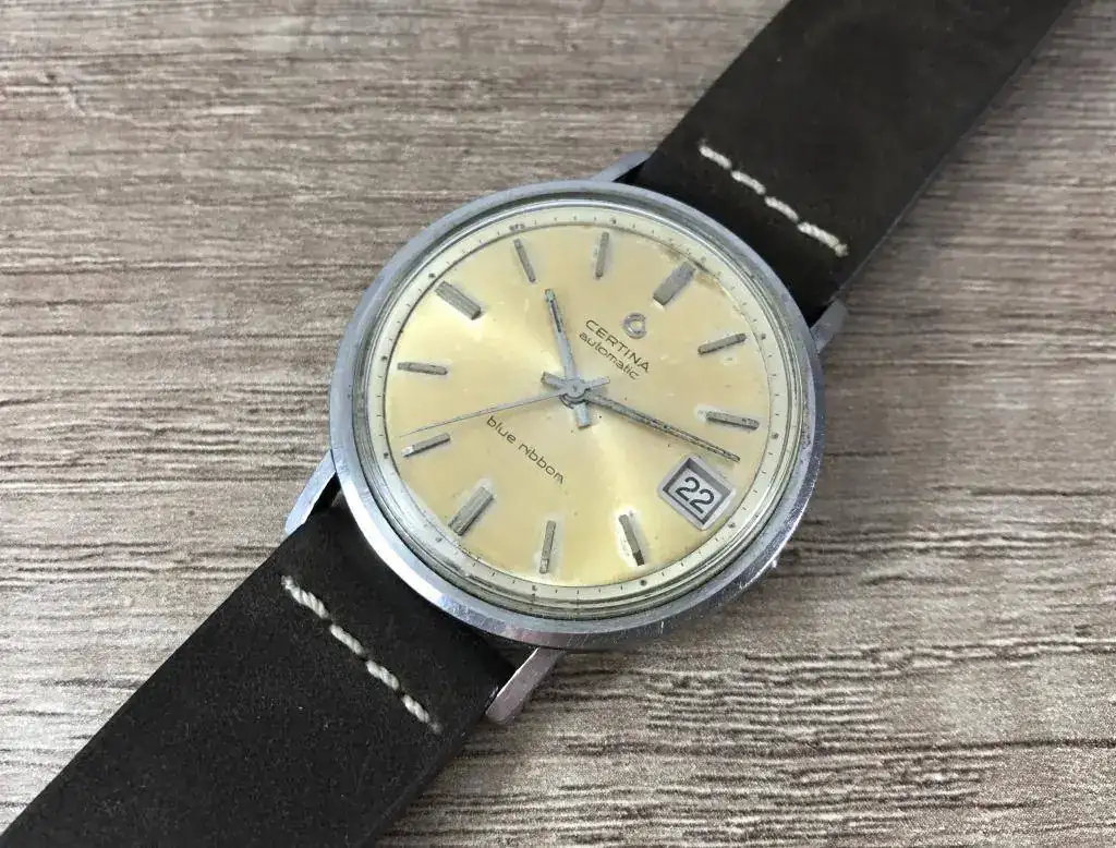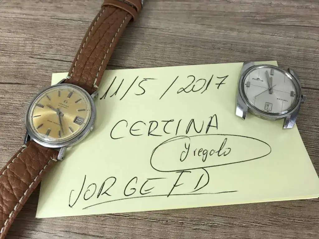 En esta ocasión es un Certina Blue Ribbon con una preciosa patina bastante uniforme que es lo que me gusto de él y que le da un precioso toque vintage. De regalo va un Fortis Estoril vintage al que le falta un trozito del aro exterior como veis en las fotos pero que esta bastante curioso, ademas funciona perfectamente (ademas le añado una correa negra que no sale en las fotos)