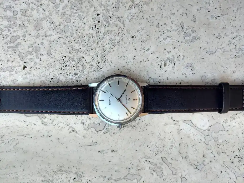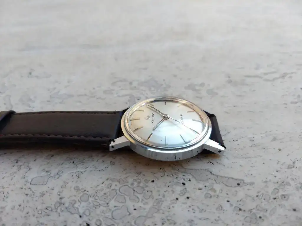 Saco este precioso CERTINA vintage del 67 en un estado de conservación excepcional y funcionando correctamente. Esfera blanca inmaculada, sin pátina ni señal alguna. Caja cromada en estado excelente, sin descartar lógicas micromarcas de un reloj de 50 años. Monta un super fiable calibre manufactura Certina 25-66 de carga manual en perfecto estado. Todo de origen excepto el plexy, que es nuevo.