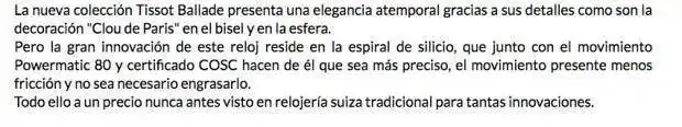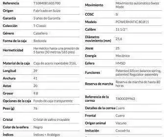 También he leído información sobre el Tissot en páginas especializadas ya que ofrece espiral de silicio.