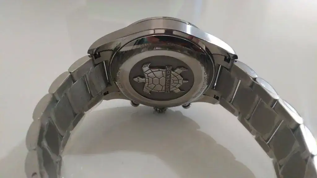 La parte trasera de la caja viene grabada con la mítica tortuga de Certina en relieve, espectacular! (Ver fotos).