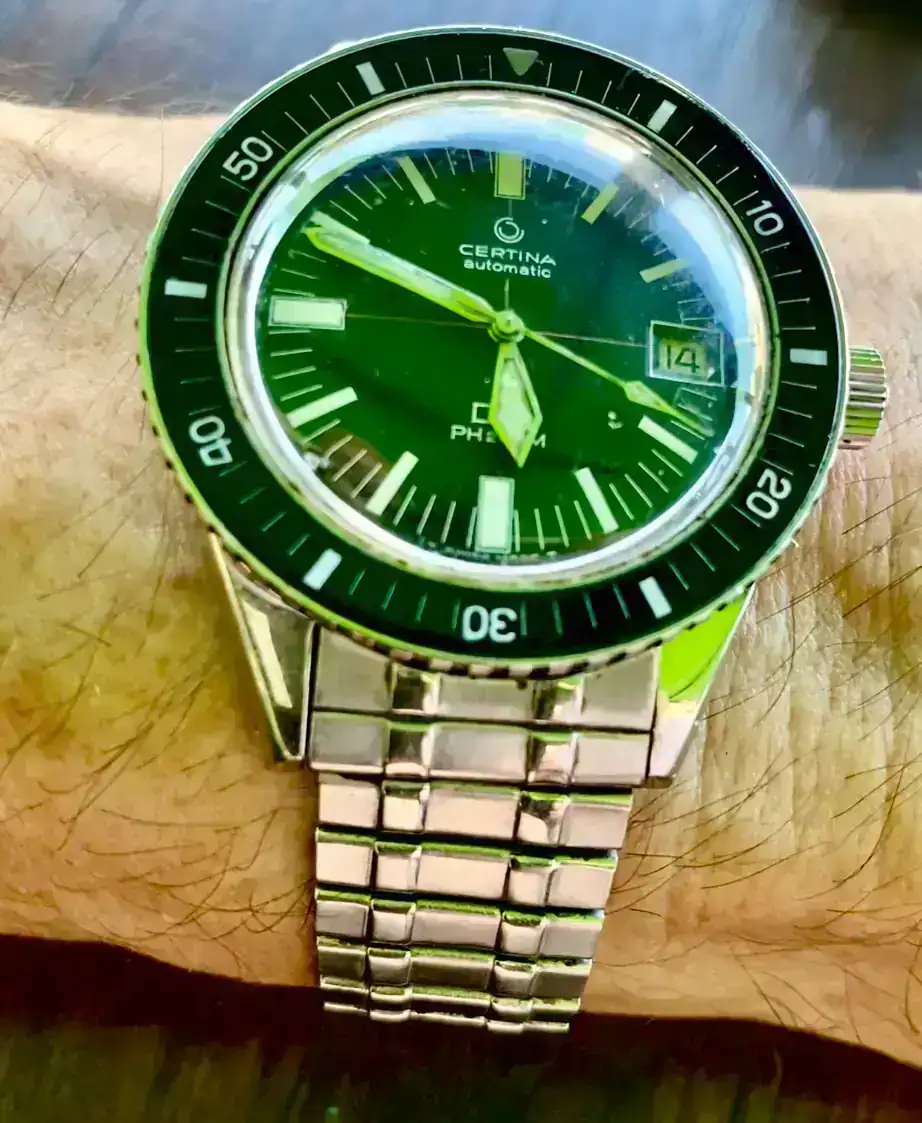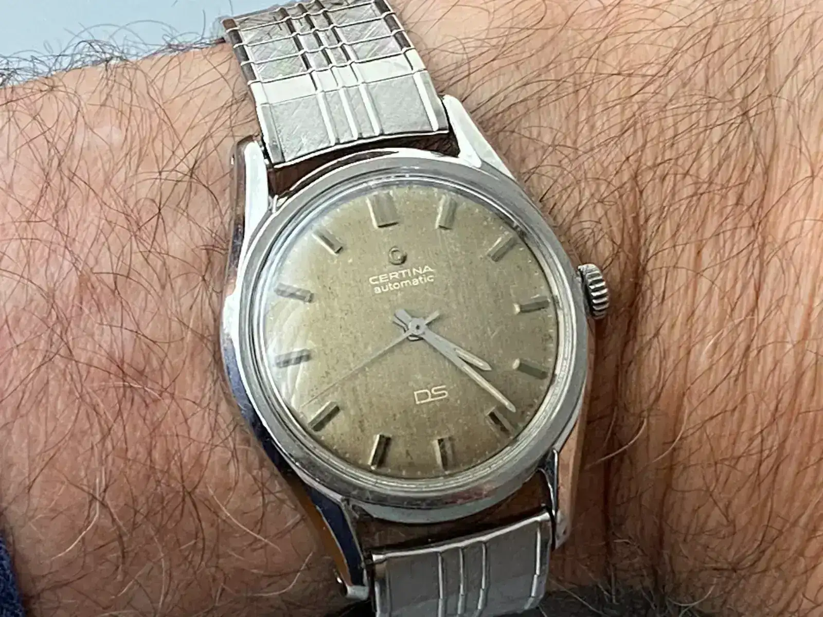 Ya se puede observar que este caballero venía con brazalete. En este caso no es un G-F: estamos hablando de que mi reloj, es más tardío y, por lo tanto, lleva un brazalete Certina de los denominados “Oruga”… o así me suena que lo llamaban en algún lugar de La Mancha.