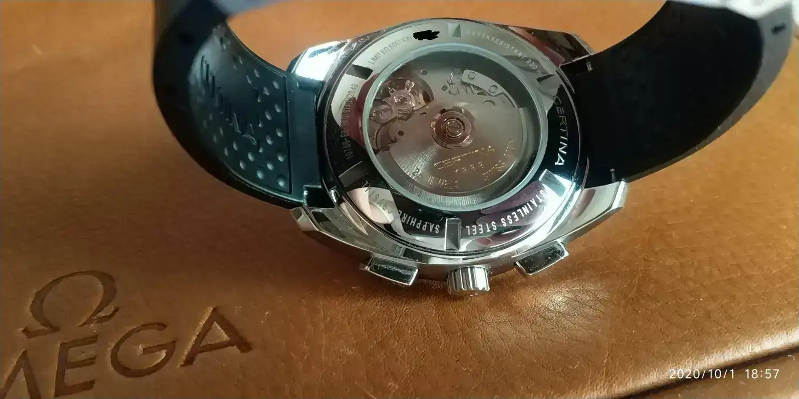 vendo certina ds3 crono reedicion de 1888 piezas. estado como nuevo no se ha usado, tan solo probado en casa. aun conserva algunos plástico protector en el cierre del caucho -cortado a 18.5 de muñeca-
