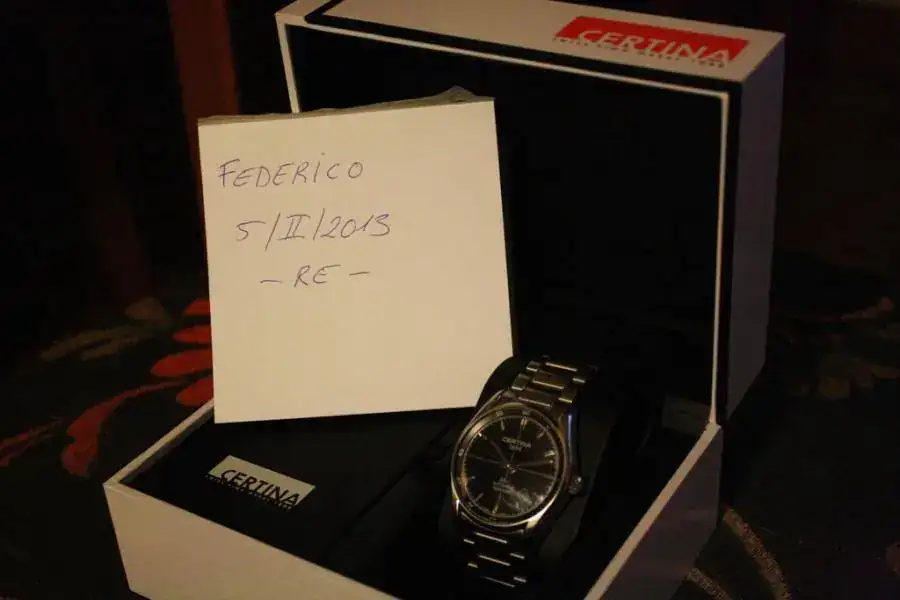 El estado es excelnte como podéis comnprobar en las fotos. La caja y el cristalestán impolutos. Algunas microrrayas tiene el cierre como podéis ver en laafoto que a tal efecto pongo.