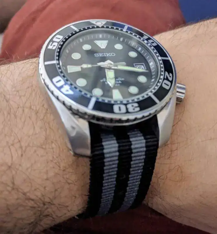 Os quería comentar que casi no puedo poner la nato porque queda muy poco espacio entre el pasador y la caja, tuve que estirar muy fuerte con unos alicates para pasar la correa. Nunca me había pasado con otros relojes. Dudo que pueda poner un caucho [emoji16]