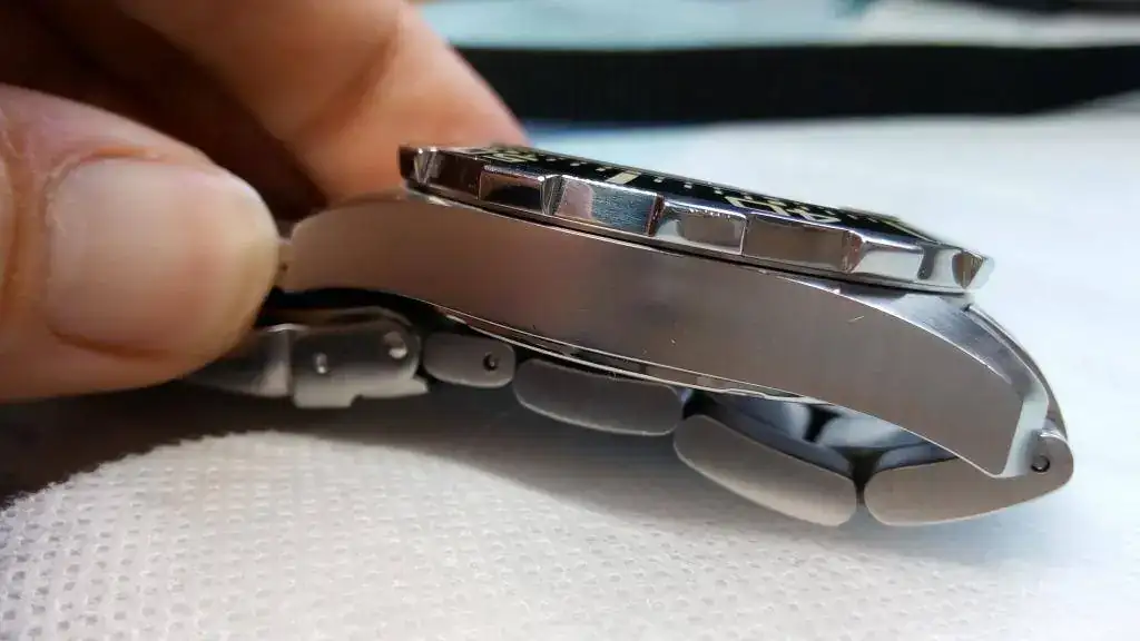 Es un reloj que, como podréis ver en las fotos, tiene marcas de uso en brazalete y caja. Las marcas quedan magnificadas en las fotos.