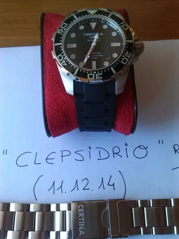 El reloj lleva puesto su caucho original, cortado para muñecas de hasta 17,5 cm, que nunca he utilizado, más que para probármelo en casa, y aparte acompaño su armis de serie, que está en perfecto estado... ¡Un gran reloj para darse un capricho estas navidades!