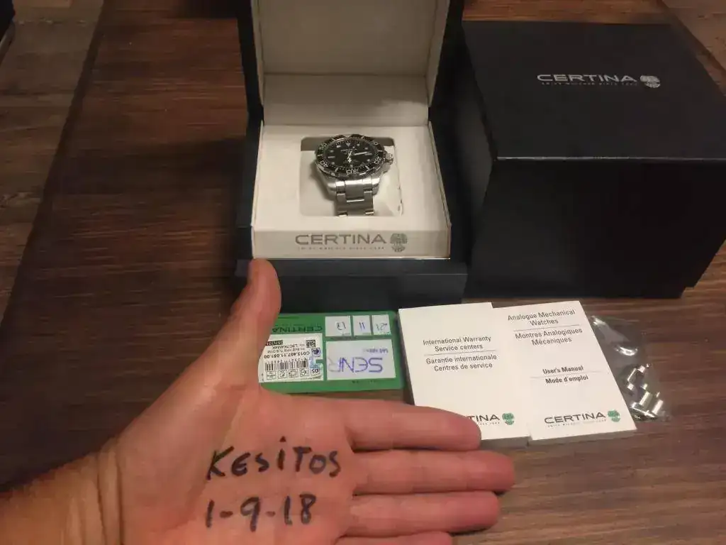 Voy a ser breve, reloj en buenas condiciones, solo las tipicas rayitas del cierre, tiene 8 meses con toda la dotación. Lo vendo porque acabo de comprarme un aquis date que le comió la tostada al certina.
