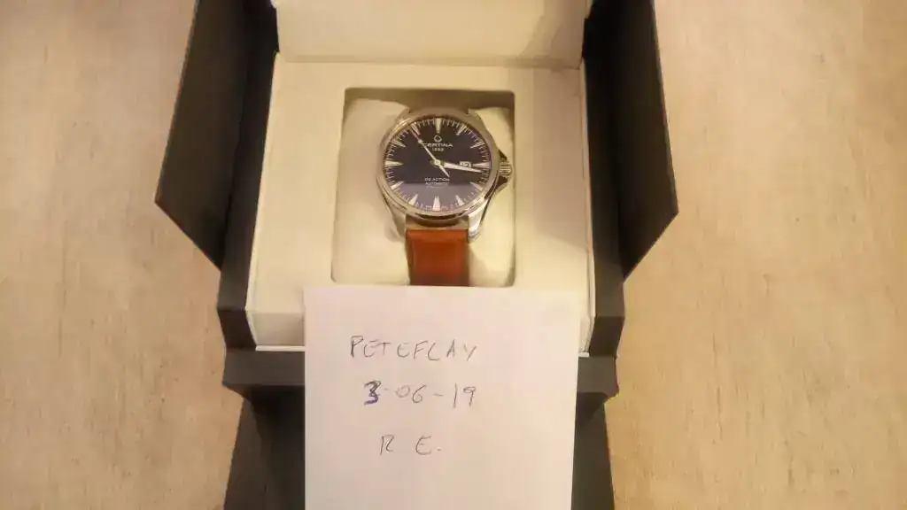Es un modelo que la marca sacó el año pasado, a mediados de año, y que descatalogó a final de año, por lo que es un pieza un poco especial, ya que fue una tirada bastante corta. Monta un calibre poco conocido, el ETA 2826, que no es más que un 2824 con la fecha un poco más grande. Lleva el fondo visto y el rotor un poco decorado. Este año Certina ha vuelto a sacar este modelo, pero con el Powermatic 80 y ventana de fecha y día.