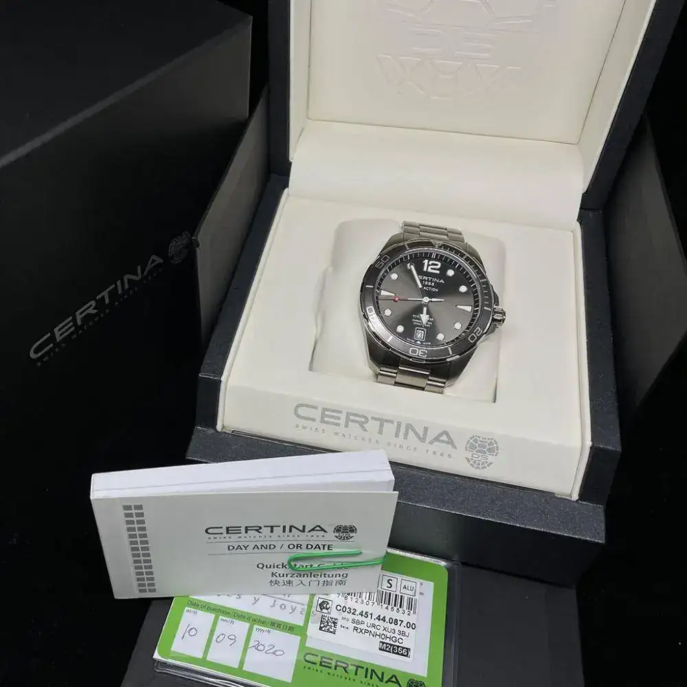 Fue comprado el 19/09/2020 en concesionario oficial Certina español, hace sólo 1 mes, dotación completa,