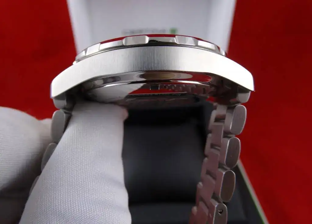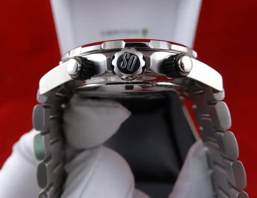El reloj viene con toda su dotación, caja y papeles, así como los eslabones sobrantes. Destacar que tanto pulsadores como corona son roscados.