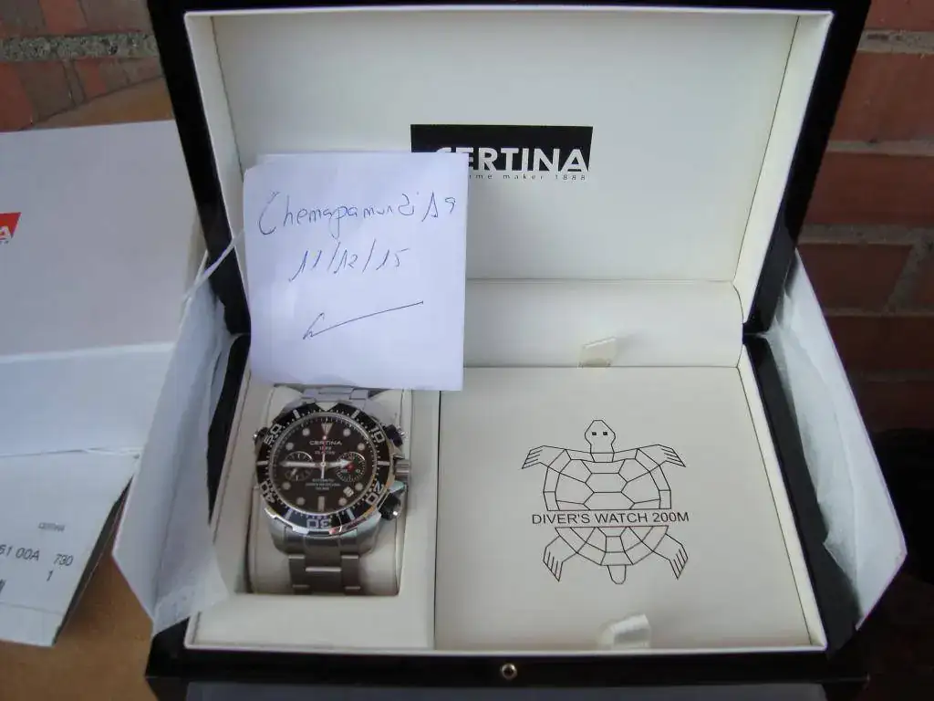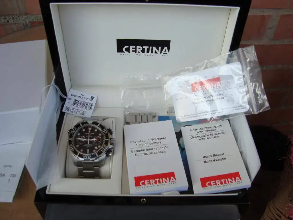 HOLA A TODOS PUES COMO PARTE DE PAGO DE MI FORTIS COSMONAUTS RECIBÍ ESTE IMPONENTE Y PRECIOSO DIVER CERTINA DS ACTION CRHONOGRAPH Y QUE EN UN PRINCIPIO TENIA PENSADO QUEDÁRMELO PUESTO QUE SIEMPRE ME HA GUSTADO, PERO PUES POR NECESIDADES DEL GUION (GASTOS EXTRAORDINARIOS) ME VEO OBLIGADO A PONER A LA VENTA YA QUE ES EL ULTIMO EN LLEGAR.