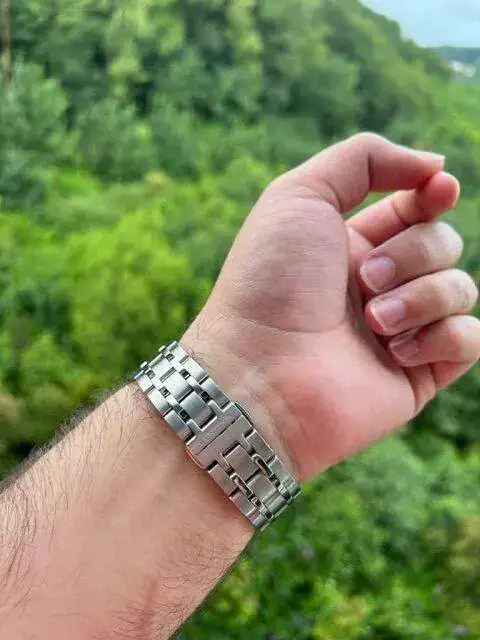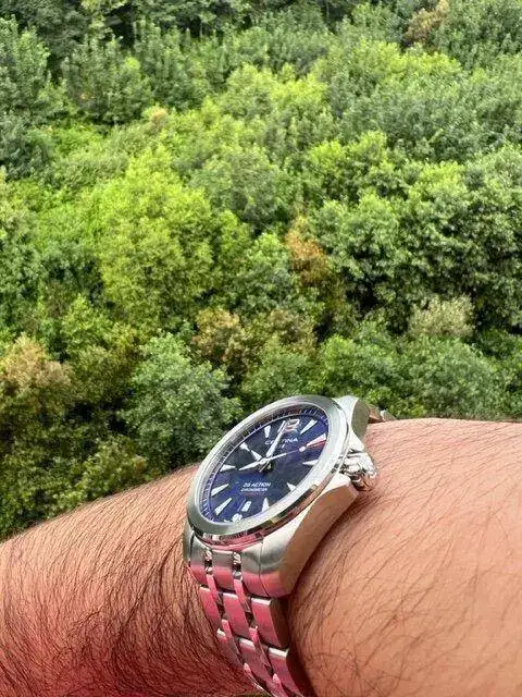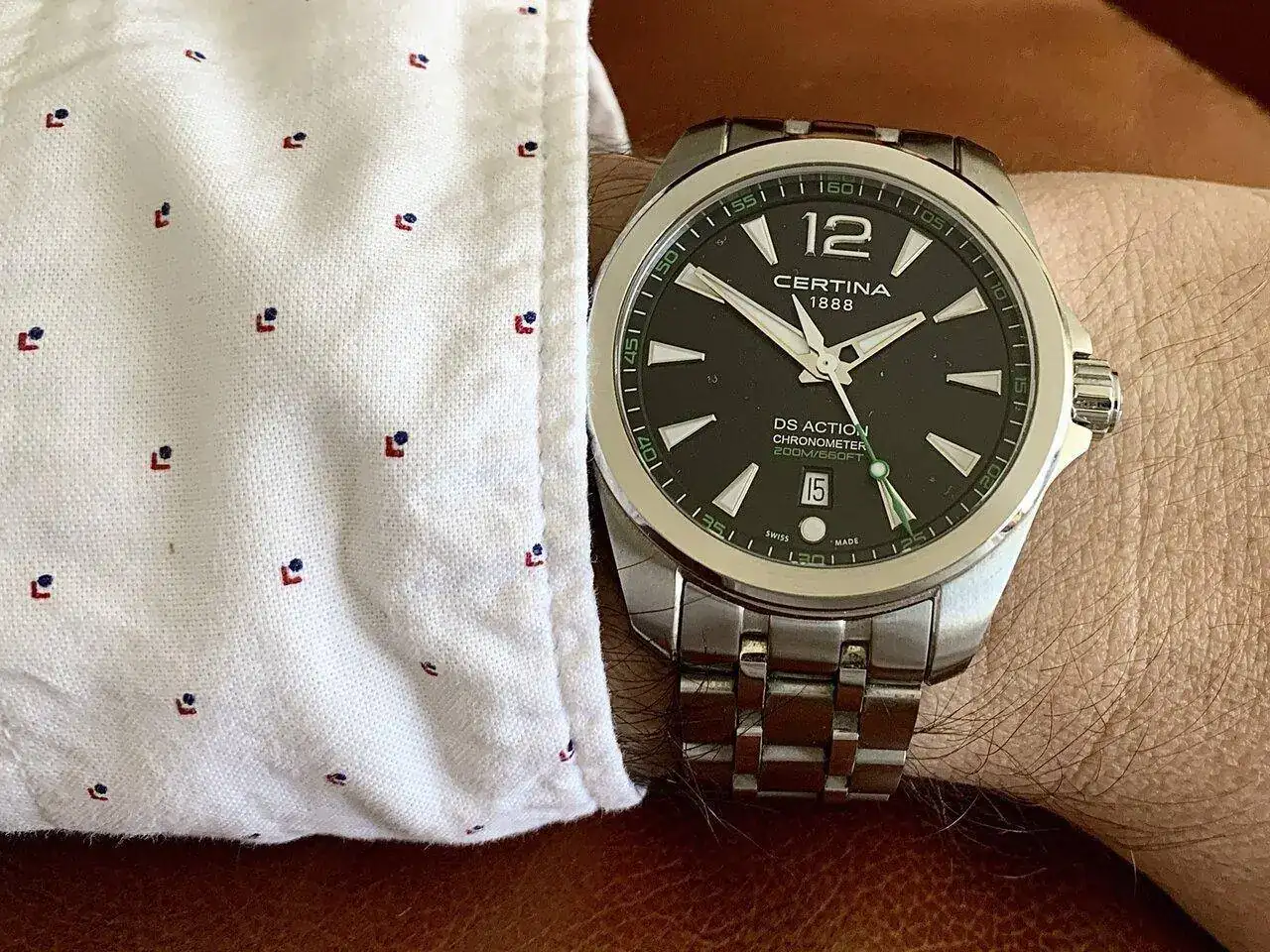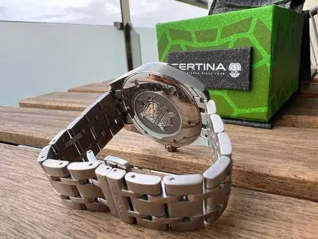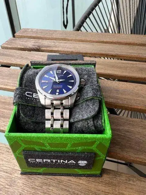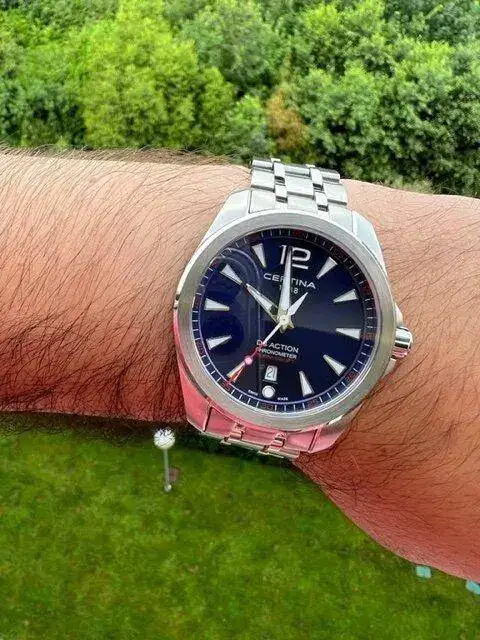 Tampoco me apetecía un cuarzo "normal y corriente", sino que quería algo un poco más especial y con mi predilección por Certina acabé dando con este. Clasificaría la estetica como entre un Aquaterra y un Conquest, aunque diría que es simplemente Certina. Es muy cómodo y sorprendentemente ligero comparado con mi Action Diver de 43mm, el tamaño de 41mm es el justo para mi muñeca de algo más de 18cm