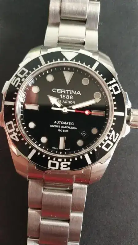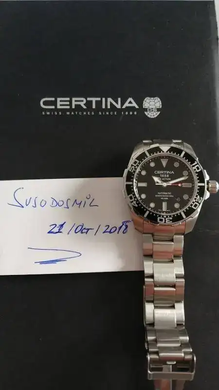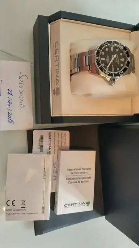 Vendo Certina Diver DS Action 43mm, las características son de sobra conocidas. Diver potente y resistente. El reloj lo compré en el FCV en septiembre del 2017 y tiene fecha de compra nuevo de 31/08/17 (el compañero lo vendía prácticamente nuevo). Lo entrego completo, con caja, papeles, garantía sellada, y un eslabón sobrante.