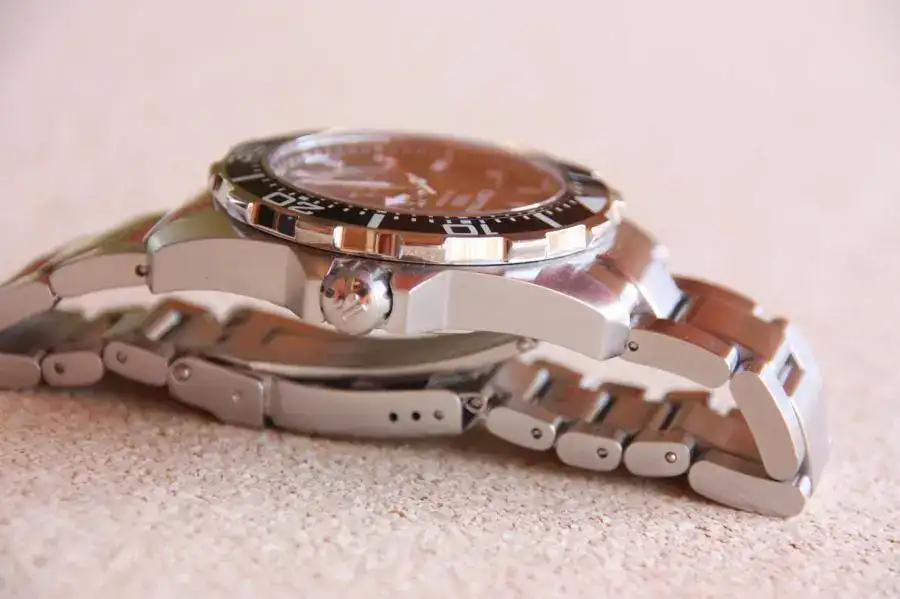 El reloj se encuentra en muy buenas condiciones. Puesto en contadas ocasiones puede tener algún pelillo en el armis y en las asas de cuando se ha ajustado el brazalete y un pelillo en el bisel a las y cinco pero nada apreciable a simple vista, solo si te fijas mucho y a la luz del sol, pero considero importante mencionarlo. Comprado el 29/07/2013 en el Corte Inglés tiene amplia garantía por delante de casi 2 años.