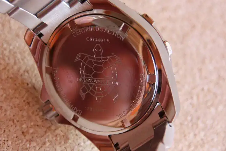 - Protección DS+ patentada por CERTINA incluye: doble junta en corona y fondo, fondo reforzado, fondo y corona a rosca y sistema de sujeción del movimiento a la caja antivibraciones.
