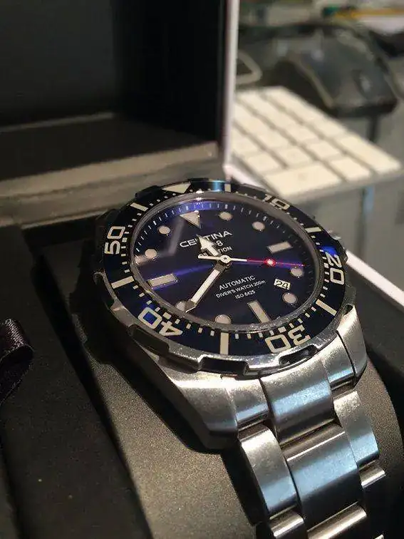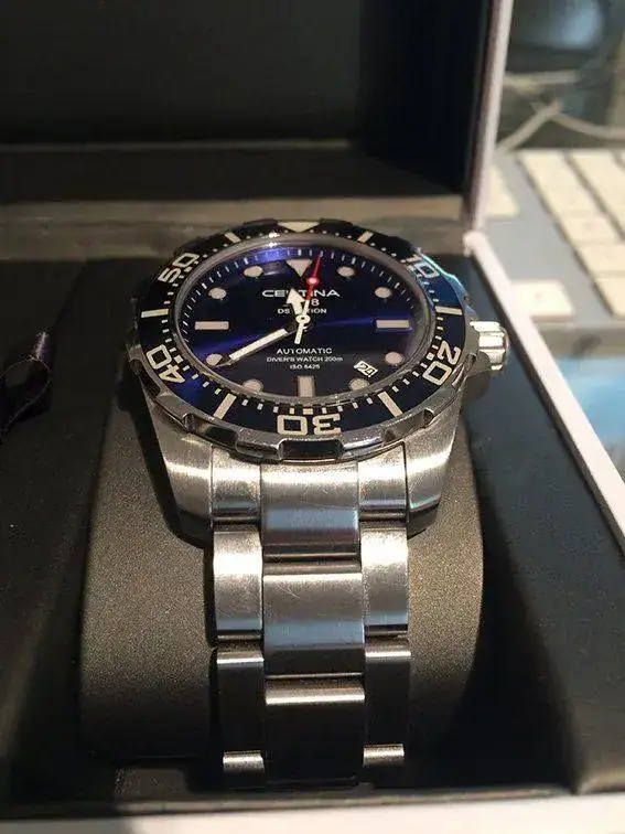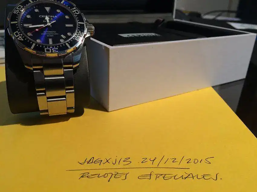Saco a la venta mi Certina DS Action para ir a por otra pieza que ya tengo fichada. El reloj es de enero del 14 (comprado por mi nuevo) y ha tenido uso, pero rotando con sus hermanos de caja. El estado es bueno, tanto de marcha como estéticamente y lo entrego con toda su dotación y los eslabones sobrantes. Ahora mismo está ajustado para muñecas de 17/ 17,5. Sólo está disponible para venta.