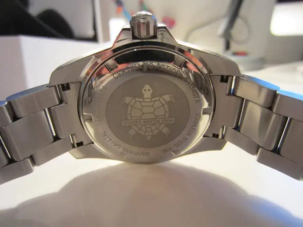 Protección DS+ (Plus) patentada por CERTINA para mayor protección contra polvo, golpes y humedad aunque la corona esté fuera de su posición. La protección DS+ incluye: Cristal de zafiro extragrueso y con tratamiento antirreflejos, doble junta en corona y fondo, fondo reforzado, fondo y corona a rosca y sistema de sujección del movimiento a la caja antivibraciones.