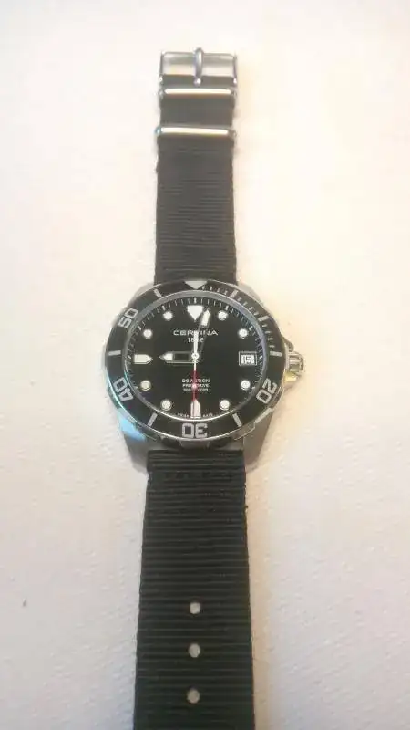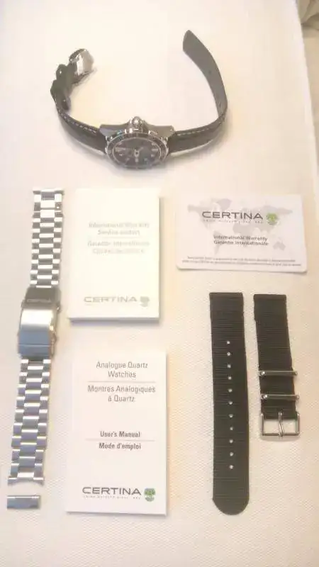 Vendo este magnífico reloj Certina DS Action precidrive, con esfera negra, tres correas distintas (armis original, cuero Hirsh Mariner y nato en dos piezas), con solo cinco meses de uso y en un estado impecable.