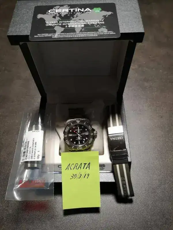 Vendo este Certina ya conocido, creo descatalogado, muy cómodo para llevar. Como todos los relojes de titanio, puede tener alguna rallita, por tanto los que son muy meticulosos que se abstengan de comprarlo. El armys de titanio tiene poco uso, iba con caucho, que se adjunta y con el cierre señalado (puede pulirse creo). El caucho cortado para una muñeca entre 17 a 18, se adjunta otro caucho. NO CAMBIOS SOLO CASH. Preferentemente entrega en mano en Barcelona.