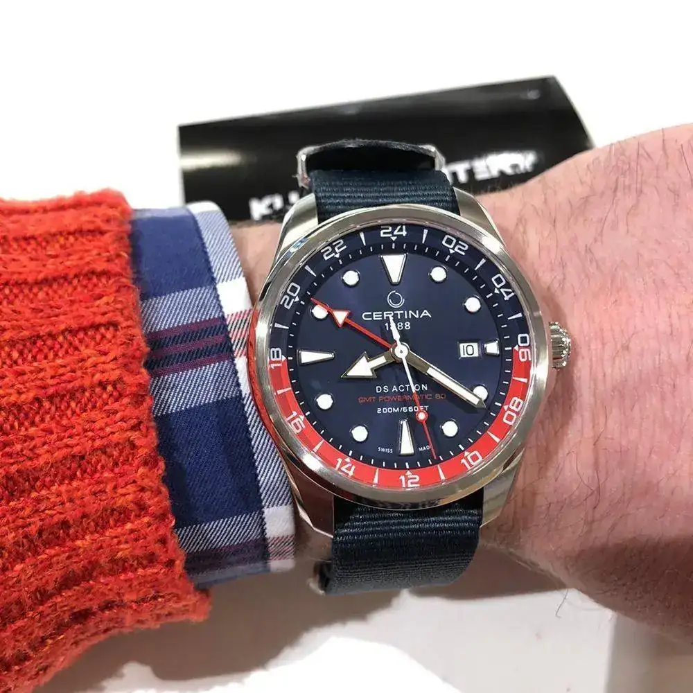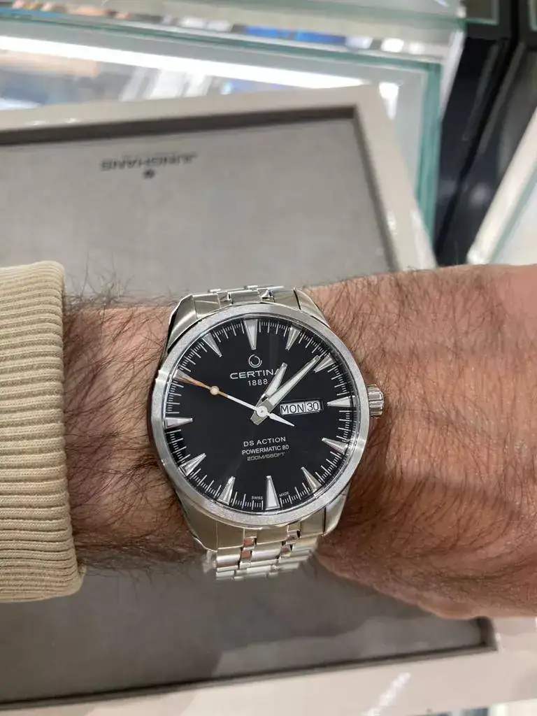 Ayer me he probado varios relojes por la capital, pero el que más me ha gustado dentro de mis posibilidades actuales, es el Certina DS Action Day-date. He visto en la web el GMT, pero no me lo he podido probar.