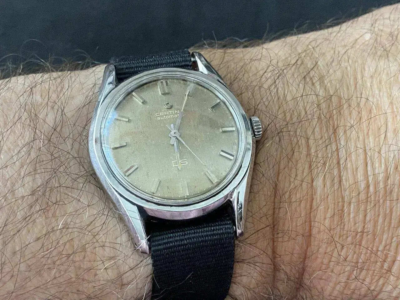 Hacía tiempo que andaba detrás de un Certina DS de los 60 del pasado siglo. Lo quería sin fecha (es una lata poner la fecha al día sin pase rápido), automático (en este caso, quería que lo fuese por el detalle tan nimio de que la tapa con la tortuga tiene un relieve o nervado que me gusta más que la de los de cuerda) y con una esfera que no estuviese demasiado deteriorada.