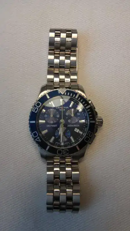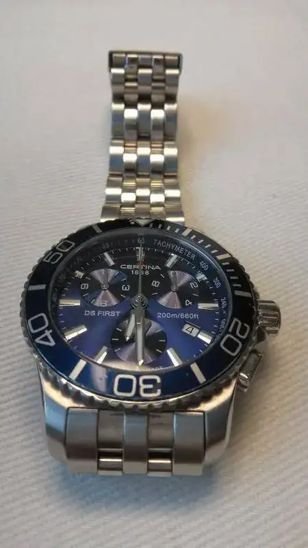 Vendo reloj Certina DS First Chrono Cuarzo, con esfera azul. El reloj tiene una gran robustez y calidad constructiva.
