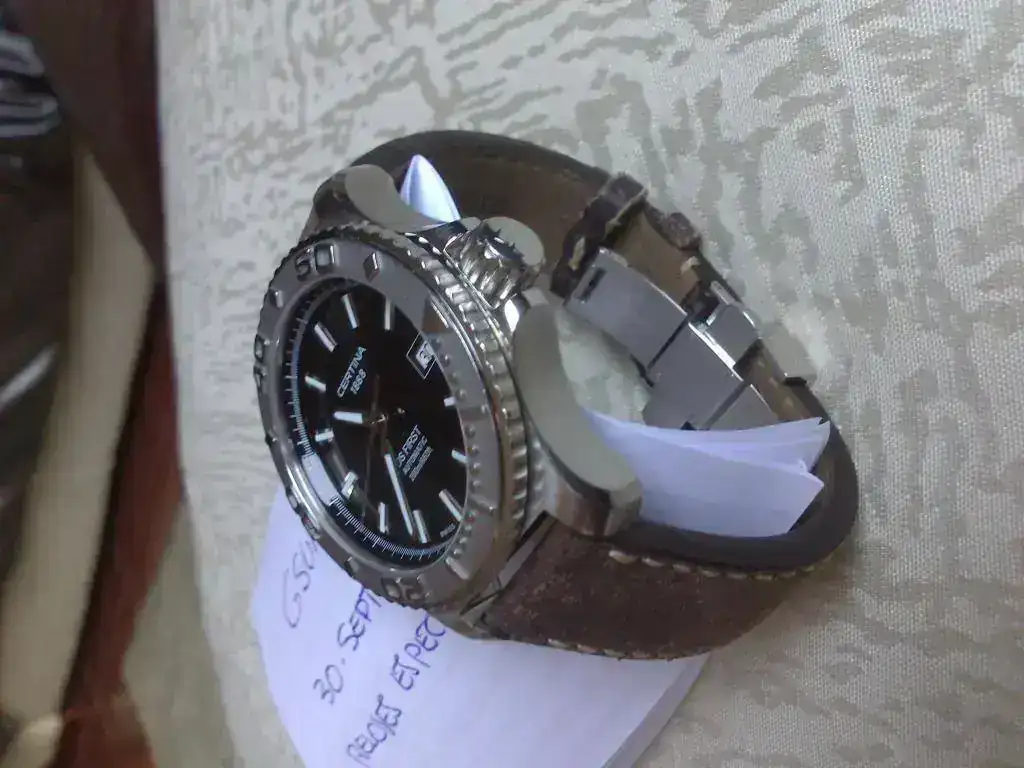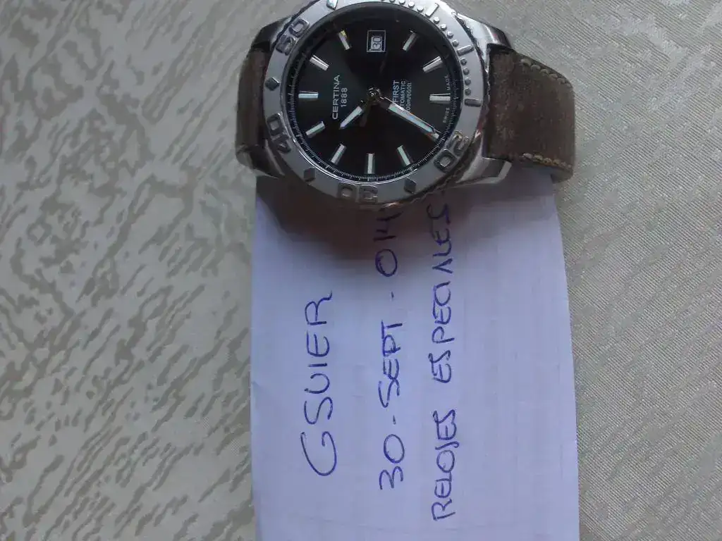 Vendo este certina ds first modelo automático descatalogado sistema protección Ds corona roscada sumergible 200m. Hay en el apartado de revisiones en este foro foro una revision muy completa sobre este reloj. Esta en buen estado con roces propios del uso pero nada profundos de marcha esta en parámetros cosc.