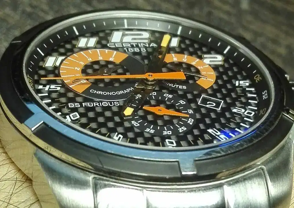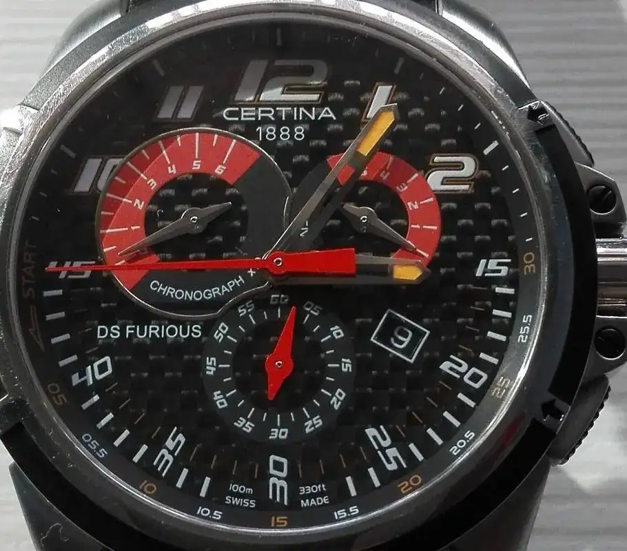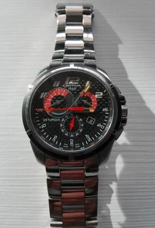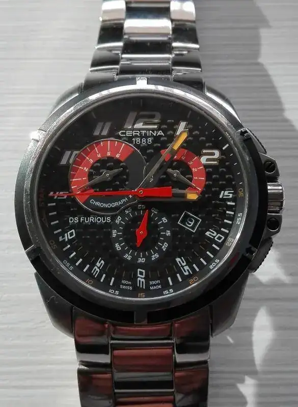 Pongo a la venta este reloj de cuarzo de la marca Certina, modelo DS Furious. Está en buen estado, se aprecia ciertos pelillos a contraluz, pero por lo demás no presenta ni golpes ni arañazos.