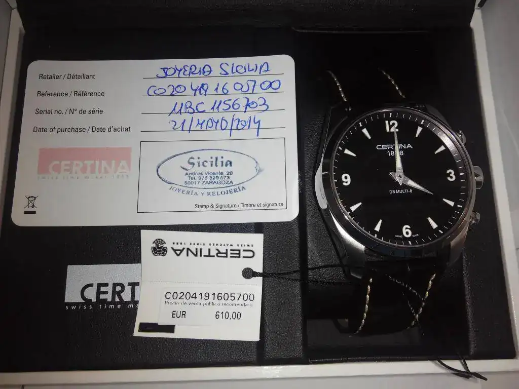Pongo a la venta mi CERTINA DS Multi 8, apenas sin uso, como podéis ver en las fotos, magnífico reloj, magníficas calidades y uno de los Ana/digi más bonitos del mercado. Gracias por visitarme y gracias al foro que nos permite estos quehaceres. Si queréis más fotos pedídmelas.